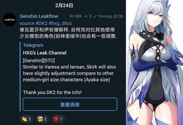 丝柯克建模优化!丝柯克会跟伊安珊,瓦蕾莎一样,微调少女体型。这不意外,毕竟纳塔后模型有明显变化,来回切换就能感受非常明显,丝柯克作为版本末的主推,不改这个被人诟病的老模型才奇怪呢。可能有玩家觉得丝柯克最大的问题是脸型,而不是体型问题。其实丝柯克那个脸其实就是因为通用体型才显得头和脸特别大的,而且在官方剪影中,丝柯克都对不上原模型,肯定调整了,求求修成隔壁没带眼罩的镜流那种清冷美人吧!